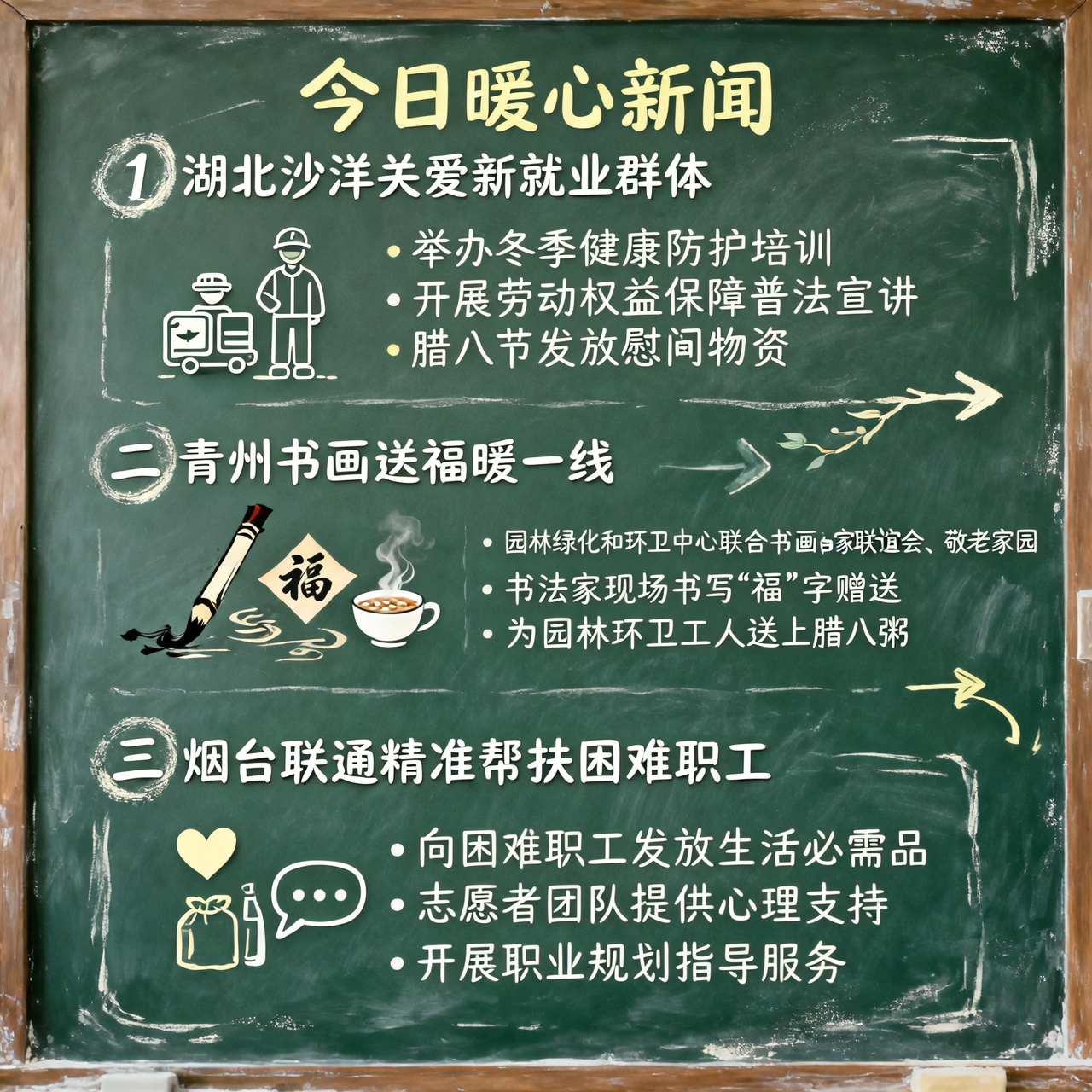 1月26日下午3时,湖北沙洋县邮政业安全发展中心联合县社工部、人社局、司法局、妇幼保健院及高坪社区,共同举办了一场“两新群体冬季健康防护+维权+养老保险实操培训暨困难群体腊八节慰问活动”。活动现场,专业人员为外卖员、快递员等新就业形态劳动者讲解了冬季健康防护知识,并重点普及了低温天气下的防寒保暖要点和常见伤病预防措施。此外,还进行了劳动权益保障普法宣讲,指导大家如何线上办理养老保险相关业务。正值腊八节,活动现场还为外卖员、快递员代表送上热气腾腾的腊八粥,并为困难群体发放坚果、洗衣液等慰问物资。此次活动不仅提升了两新群体的健康防护意识和权益保障能力,更传递了社会对新就业形态劳动者的关心关爱,为营造温暖和谐的社会氛围注入了积极力量。