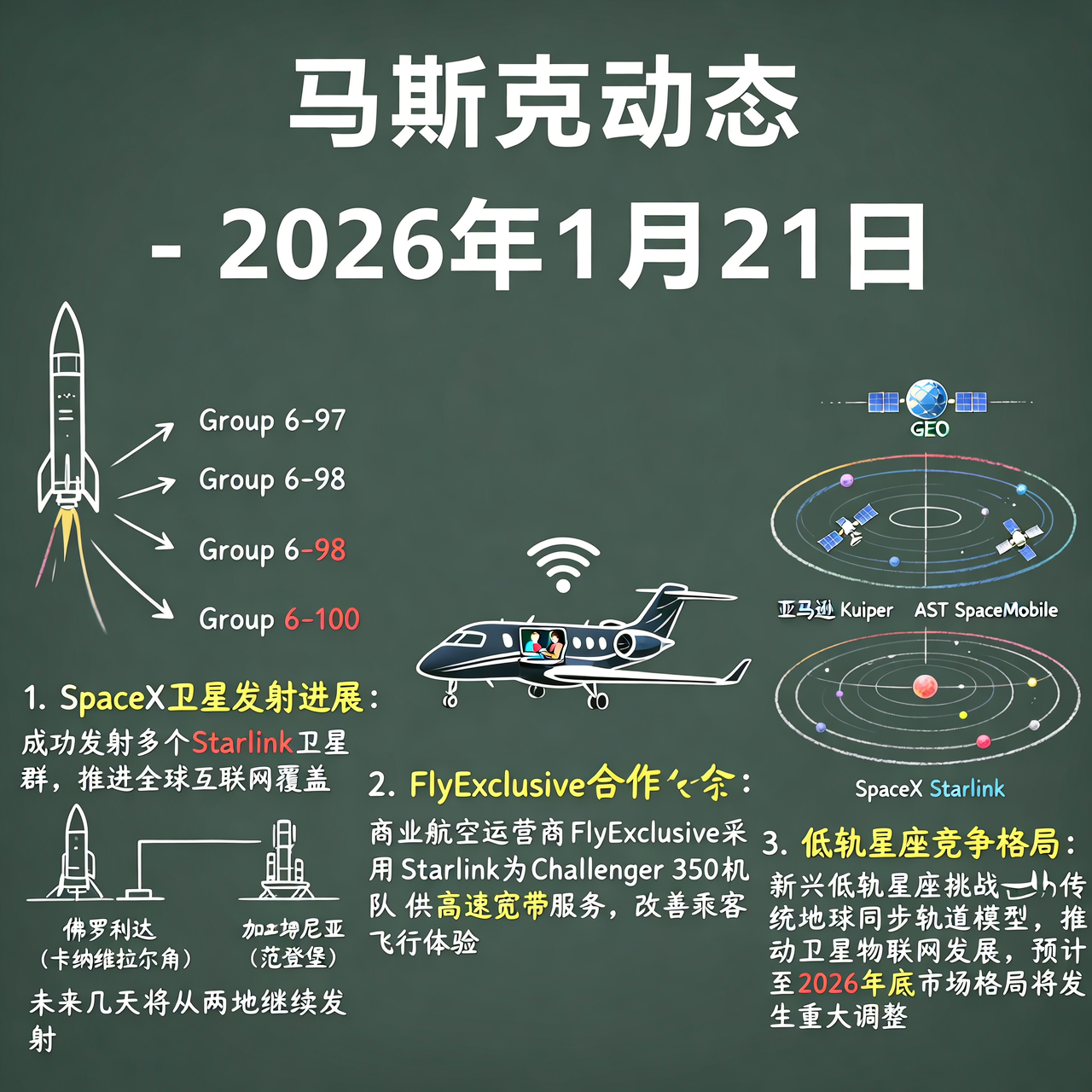 近日,SpaceX继续保持其高频率的发射节奏,成功发射了Starlink Groups 6-97, 6-98, 和 6-100。这些卫星的成功发射不仅展示了SpaceX在航天技术上的领先地位,也进一步推动了其全球互联网覆盖的目标。通过不断扩展Starlink网络,SpaceX旨在为地球上偏远地区提供高速宽带服务,这将极大地改善当地居民的生活质量。此外,SpaceX还计划在未来几天内从佛罗里达和加利福尼亚两地分别发射更多Starlink卫星,继续扩大其卫星网络。