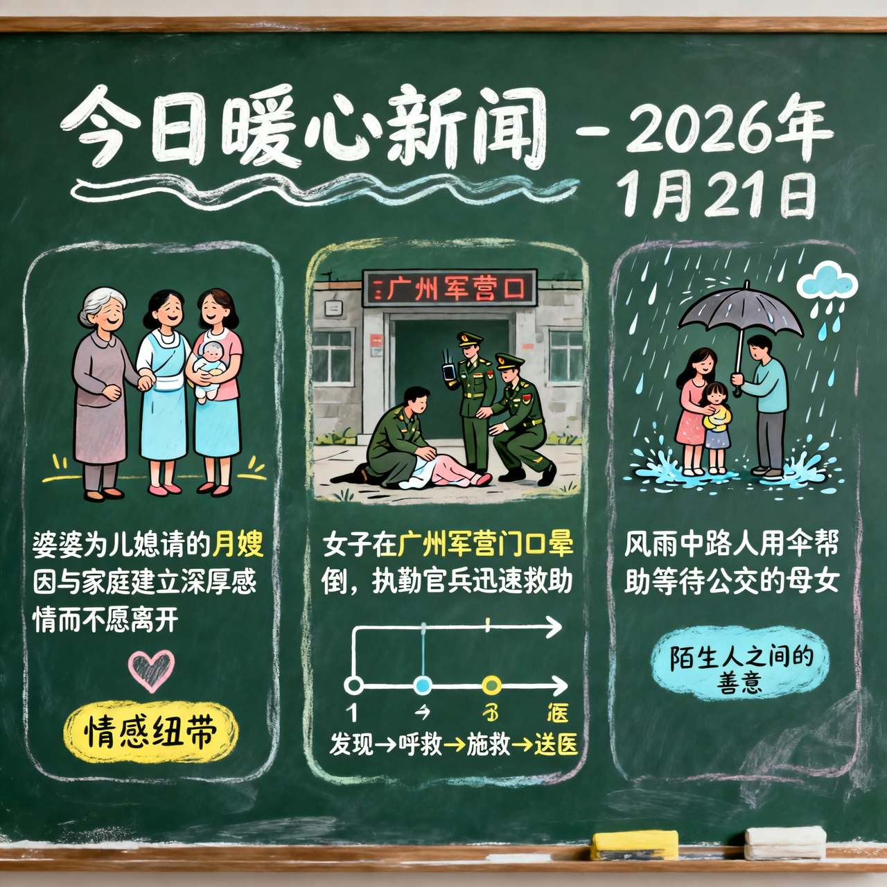 婆婆给儿媳找了月嫂,满月她却不愿走,背后原因让人泪目 近日,在重庆发生了一则温馨的故事。一位婆婆为儿媳请了一位… 继续阅读今日暖心新闻 – 2026年1月21日